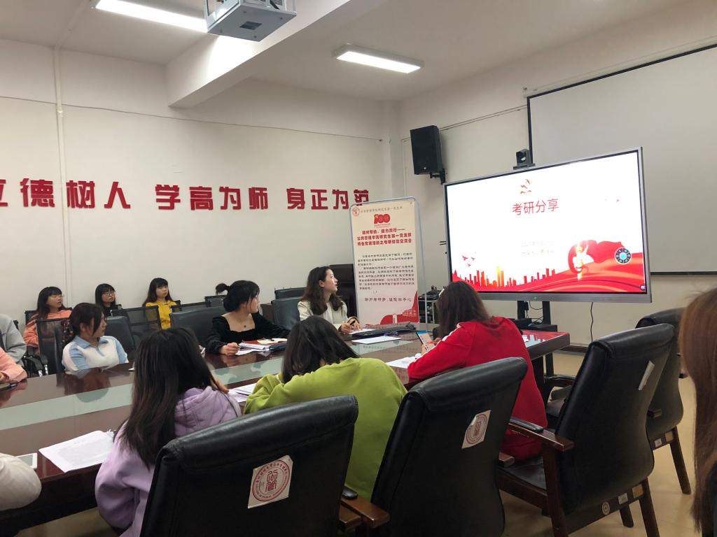 随后,曹晓月、秦森、王正敏、王娇四位同学与大家分享他们在考研过程中的宝贵经验,包括如何备战英语、政治和专业课,如何择校和专业,以及复试中应该注意的一些问题等。在精彩纷呈的分享之后,本科生同学根据自己备战考研中所遇到的一些问题与困难与学长学姐们展开了一对一交流。
