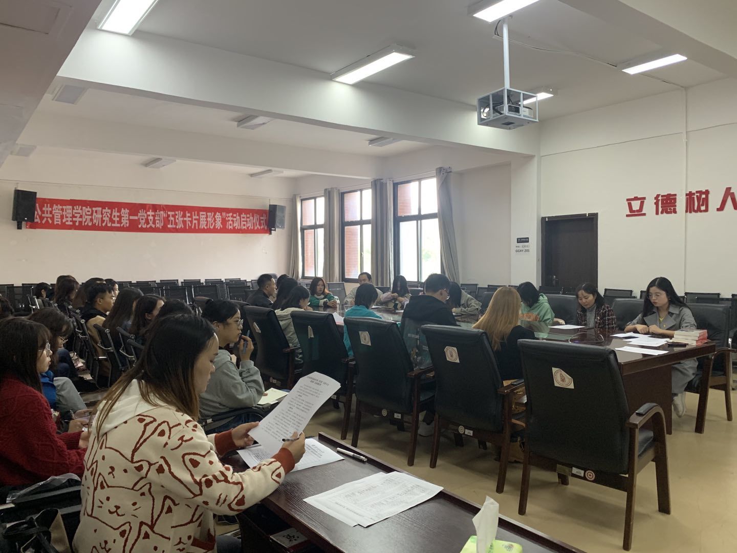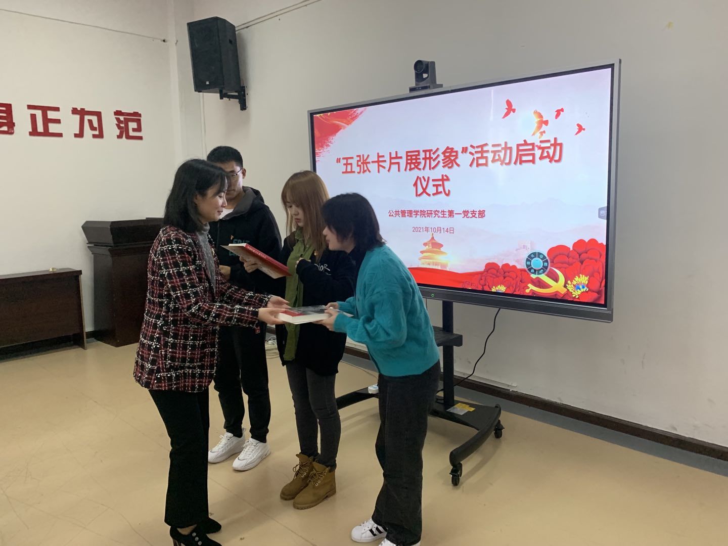 2021年10月14日,为进一步打造支部党建特色品牌,充分发挥支部战斗堡垒作用和党员先锋模范作用,z6mg人生就是博官网研究生第一党支部在正德楼201会议室举行“五张卡片展形象”活动启动仪式。公司党委书记廖承红列席会议,支部全体党员参加,启动仪式由支部书记王倩倩主持。