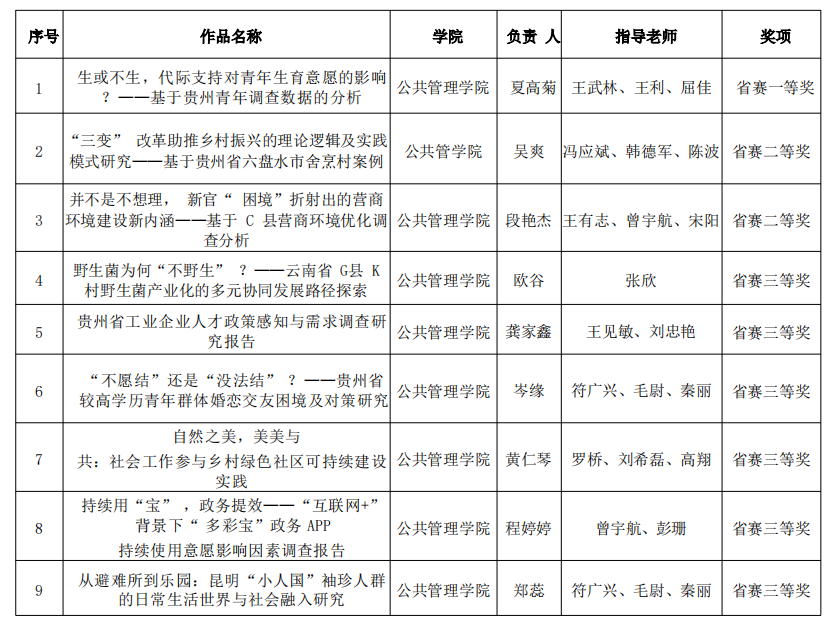 2023年第十八届“挑战杯”全国老员工课外学术科技作品竞赛贵州赛区获奖作品名单