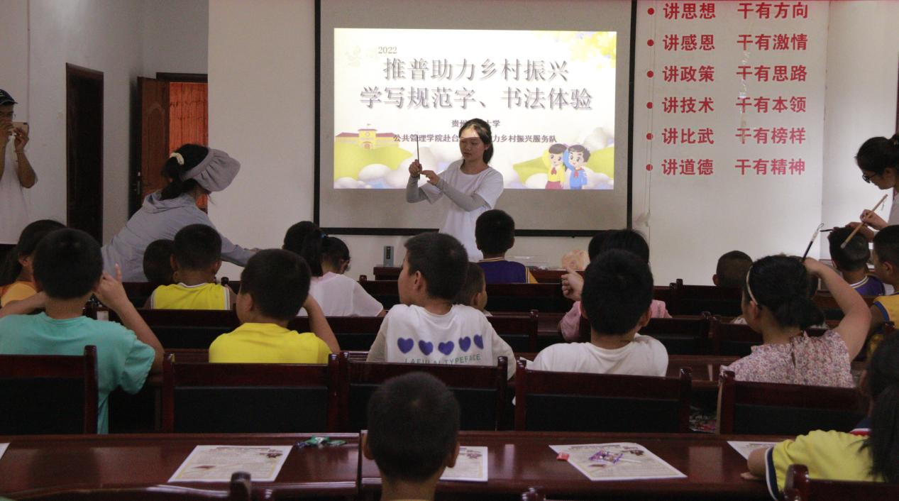 开展国家通用语言文字和中华经典文化乡村行活动。推普实践队组织开展了语言文化群众性展演活动,与大田村民共跳芦笙舞,学唱苗语歌,挖掘整理了当地非遗、乡规民约、地方戏曲、俗语民谣等语言素材,服务了当地语言文化资源建设。