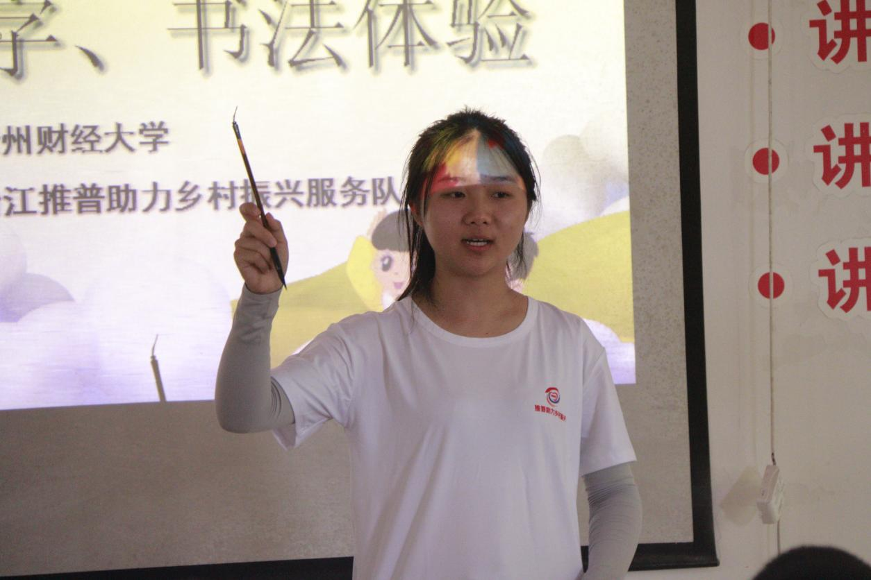 加强国家通用语言文字教育。推普实践队与当地小学、幼儿园结对子,结合大田村实际情况,开设了诵读、书法等语言文化“第二课堂”,以古典诗歌诵读、绕口令、书法体验等形式,面向大田村的青少年和学前儿童开展了国家通用语言文字教育、宣传活动,服务当地教育质量提高。