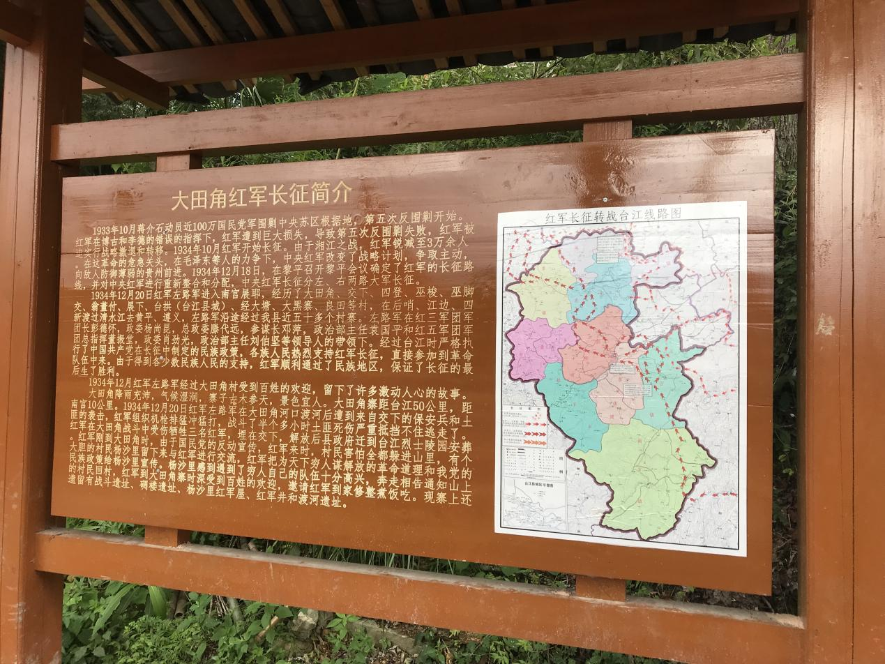 1934年12月,红军左路军经过大田角村,在大田角河口渡河后遭到来自交下的保安兵和土匪的袭击,红军组织机枪排猛冲猛打,成功击退敌人。在杜吉松的带领和老支书杨秀光的讲解下,全体师生重走了当年红军在大田村的“长征路”。