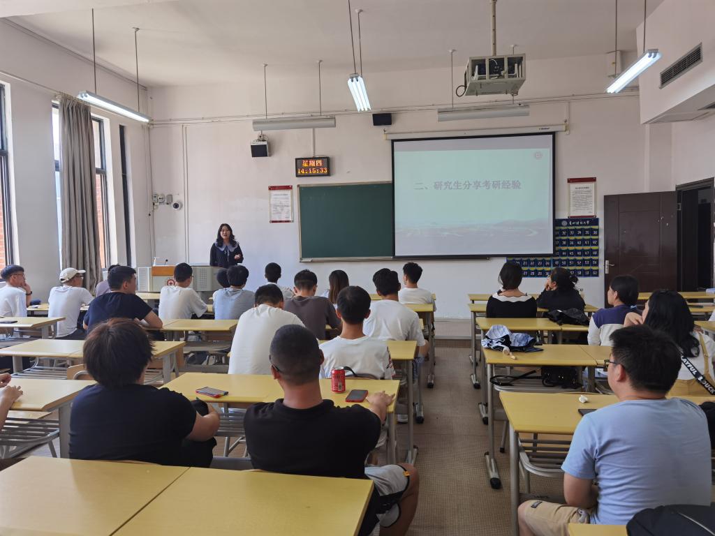 屈佳围绕同学们提出的困惑并结合自身的经历进行暖心解答,嘱托同学们在遇到问题时要及时和老师们沟通交流,鼓励同学们不要轻言放弃,及时调整心态,以最好的状态迎接考研这场“攻坚战”。