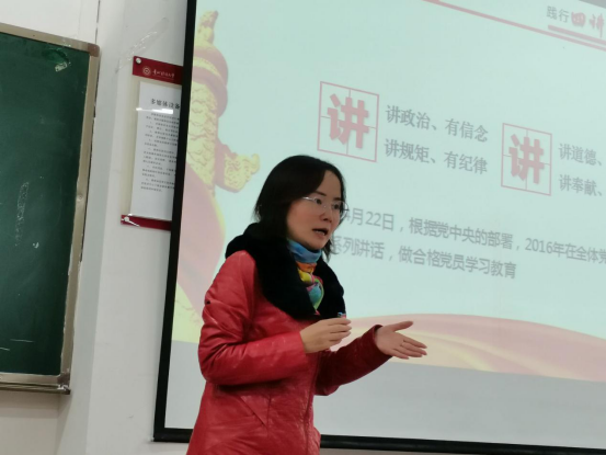 廖承红围绕“四讲四有”讲解如何做一个合格的共产党员。先是向“四讲四有”的内容及含义进行了解释,接着就如何做到“四讲四有”和“习近平总书记论如何做一名合格的共产党员”进行了详细讲解。