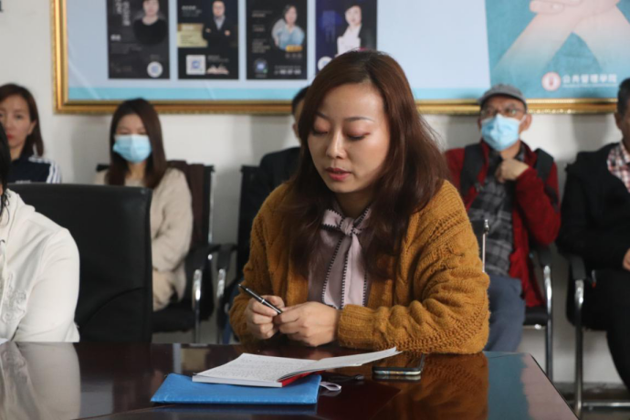 之后,教管系教工党支部刘应娟、李倩作为教师代表进行交流发言,两位老师都阐述了自己在学习后且通过自身经历谈论了感受。
