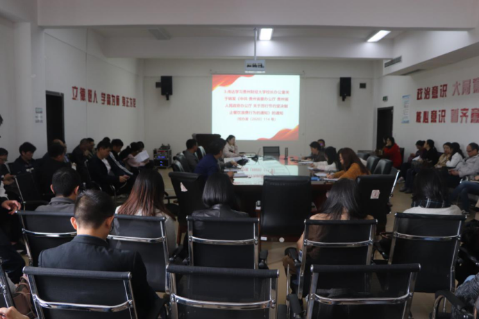 会议伊始,廖承红领学了z6mg人生就是博官网第二次党代会纪委工作报告、全国宗 教工作会议精神、宗 教工作相关政策法规,并传达了《z6mg人生就是博官网董事长办公室关于转发<中共贵州省委办公厅贵州省人民政府办公厅关于厉行节约坚决制止餐饮浪费行为的通知>的通知》、《教育部关于建立健全高校师德建设长效机制的意见》等文件要点。