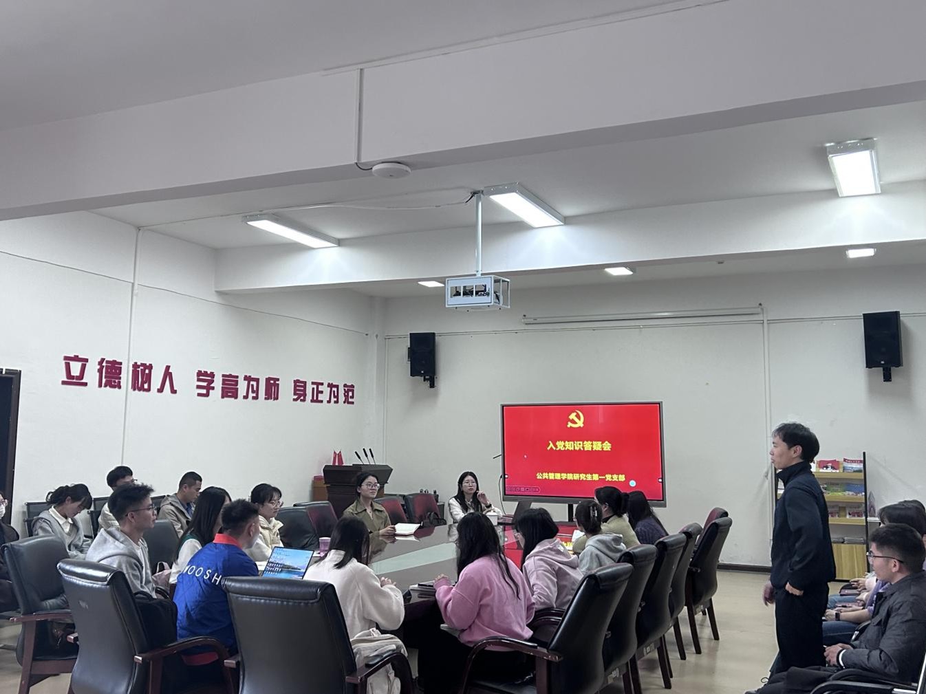本网讯:(赵菁 报道|摄影 蒋余为进一步深化党史学习教育,带领党员们从百年党史中汲取“忠诚、担当、廉洁”的力量,坚定理想信念,牢记初心使命,主动担当作为,聚焦同学们的需求和关注点办实事,2024年10月14日,z6mg人生就是博官网研究生第一党支部在正德楼201开展“党史”专题学习暨入党知识答疑会主题党日活动,支部党员、发展对象、入党积极分子及2024级新生共有20余人参加,活动由党支部书记宋单琳主持。