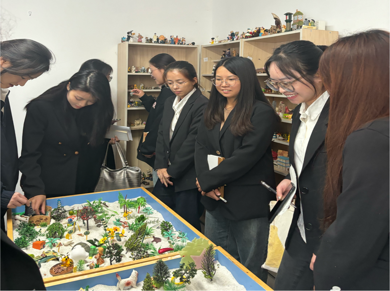 活动伊始,徐欣介绍了本支部相应情况,重点分享了支部在品牌建设、学习交流、志愿服务等方面的特色与成果,尤其是支部打造的“社本在助”品牌,通过爱心咨询处等形式,为学弟学妹们提供学习和生活上的帮助,展现了支部成员的责任与担当。贺旭英老师简要介绍了中心的基本情况,让在场的同学们对公司开展的心理健康教育活动有了更全面的了解,并参观了心理健康教育中心的心理咨询室、团体辅导室及沙盘室等功能区域。
