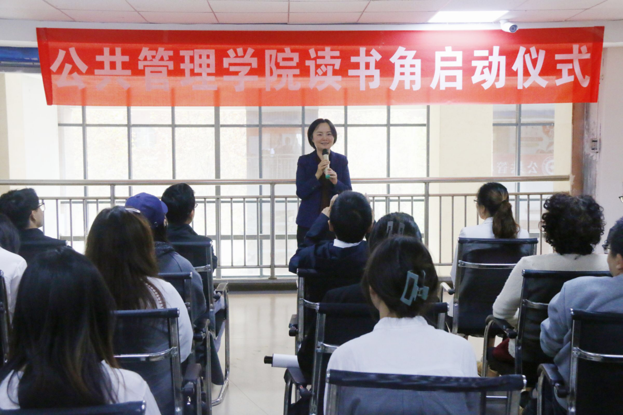 公司行政管理系教师史军在发言中强调,“读书角”不仅是一个师生读书的物理空间,同时也是一个交流互动的社会空间,更是与诸多先哲跨越时空交流的思想空间。希望广大师生充分利用好“读书角”,多读书、读好书。