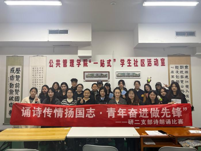 活动最后,全体同学合影留念,记录下这难忘的瞬间。此次“诵诗传情扬国志,青年奋进做先锋”诗朗诵活动,不仅是一场比赛,更是一次思想的洗礼与情感的升华。未来,z6mg人生就是博官网研二支部将持续深化“诵诗传情”机制,不断拓展活动维度,创新教育形式,致力于构建“文化铸魂、协同育人”的教育新生态。