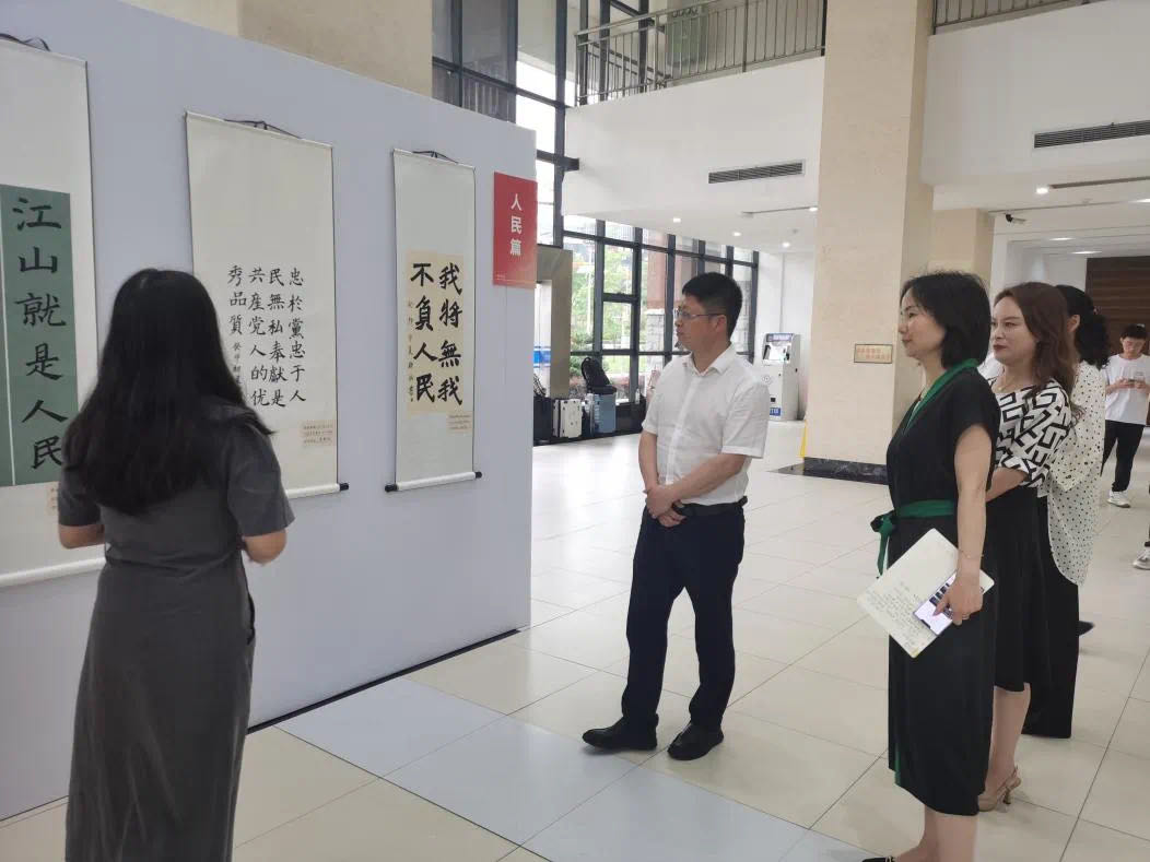 展出期间,邀请赵普董事长参观书法展,赵普认真聆听了讲说员的介绍,表示赞赏,认为书法展是公司主题教育的亮点,是青年学子培根铸魂的有效途径。