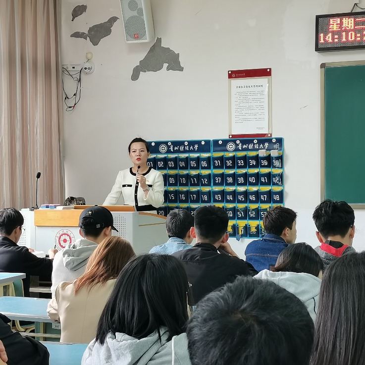 刘晓娟首先从党的基本知识为出发点,结合毛泽东、邓小平、江泽民、胡锦涛、习近平这几位伟大领导人的思想,讲到党在贵州省的结合史和发展史。她讲到,从遵义会议到十一届三中全会再到十九大,党一直在致力于贵州省的发展和壮大。由于自然的、历史的、地理的各方面的原因,贵州是我国西部一个欠发达的省份,也可以说是全国贫困问题最突出的省份。但在党的改革开放特别是实施新西部大开发战略以来,贵州省经济社会发展取得巨大成就,生态和民生也有很大的改善。接着,从公司的发展定位和新冠疫情形势,结合当前的就业情况,希望在座同学能不忘初心、砥砺前行,担起我们这代人的责任和使命,不断从历史中汲取精神滋养,坚定理想信念、勇于担当作为、练就过硬本领,牢记嘱托、感恩奋进。