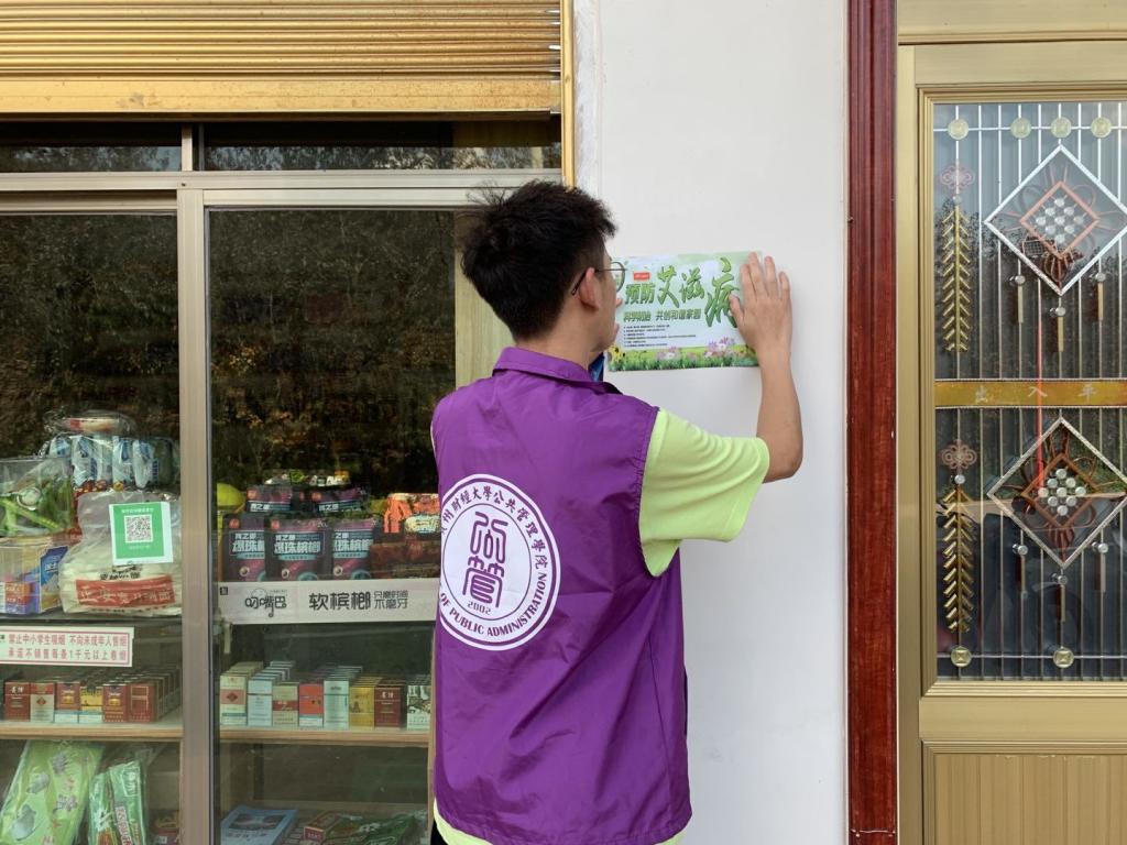 (实践队员在社区张贴宣传海报)