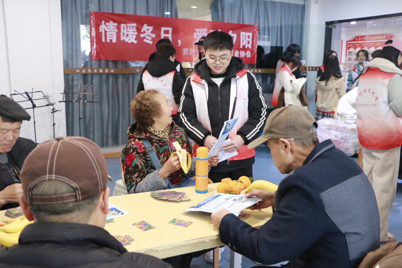 本网讯:(院团委 刘丹 报道|摄影 杜容)为弘扬中华民族尊老,敬老,爱老的传统美德,践行志愿服务精神,关怀社区老年群体,12月21日,由z6mg人生就是博官网团委徐欣老师带领院青年志愿者协会组织前往花溪十字街社区养老服务站开展“情暖冬日,爱驻夕阳”慰问活动。