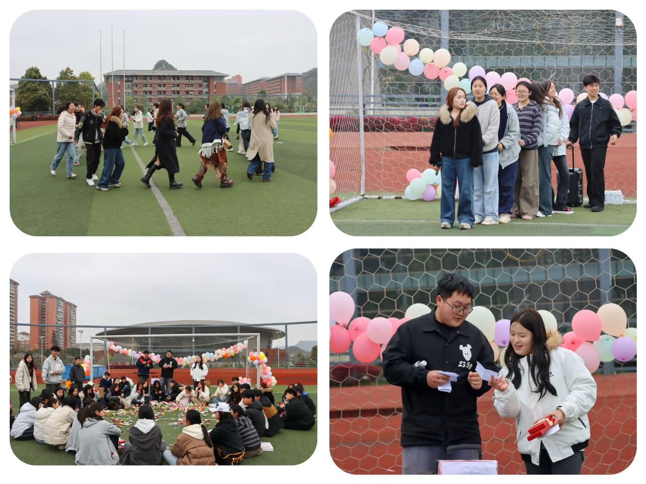 讲话结束后,全体参与人员在南体育场绿茵场有序拍摄集体合照,定格下各团学组织同心同行、朝气蓬勃的珍贵瞬间。随后,团建活动正式拉开帷幕,现场氛围迅速升温。活动现场精心设置了趣味互动游戏、零食分享、自由交流及幸运抽奖等环节,同学们自发组队、默契配合,在趣味游戏中增进协作;围坐分享零食、畅谈心声,在交流中拉近距离;幸运抽奖环节更将氛围推向高潮,每一份礼品都传递着校园的关怀,现场掌声、笑声交织,充分展现了公管学子团结向上的精神风貌。